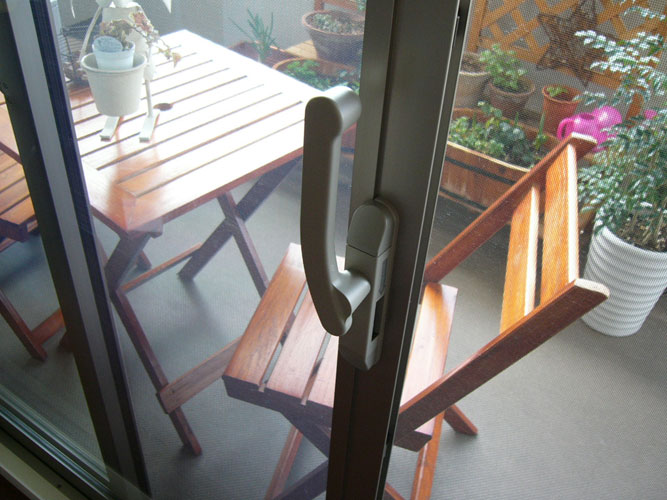レバーつきのベランダ窓。