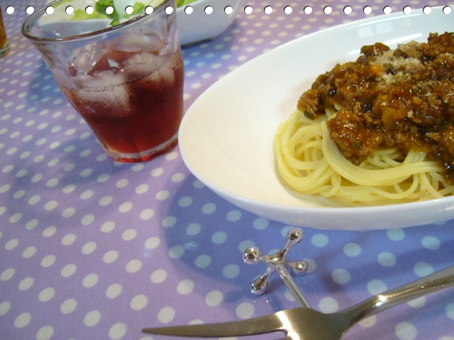 ちなみに、今日のメニューは、ミートソースパスタ。