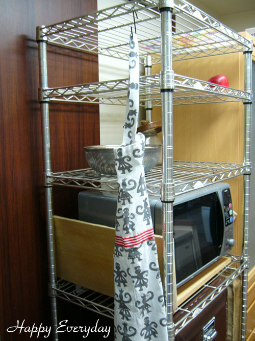元々このスチールラックは、私が一人暮らしのときに、コンポとか雑多なものを置く場所として使っていました。