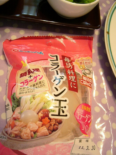 お鍋の準備ができたところで、コラーゲン玉も入れてみました。