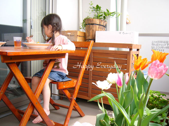 そして、今日は、ちょっと曇っていたし、涼しかったので、ベランダでなっつんとランチをしました。