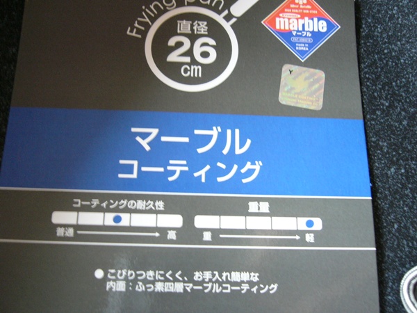 前回、買ってていいカンジだったので、今回もマーブルコーティングフライパンを買いました。