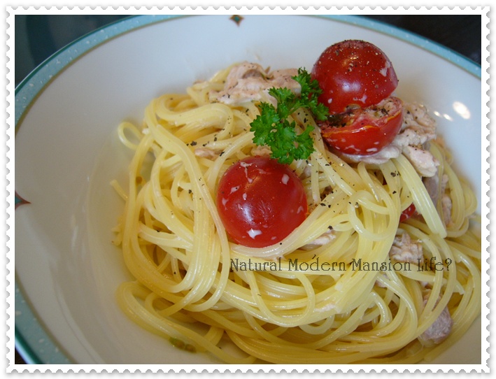 ↓今日のランチですよ~。ツナマヨパスタ。。