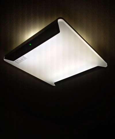 シーリングの白い部分が光るのでなく、周りから柔らかく間接照明のような光に変わります。
