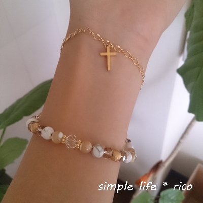 わかりやすくチェーンと天然石のブレスの方とを離して撮ってます。