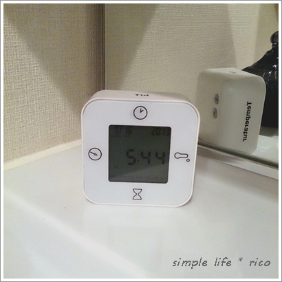 洗面所にデジタルの時計なんて、危険な気もしたんですが、あまりの可愛さと機能性に一目ぼれして買ってしまいました。