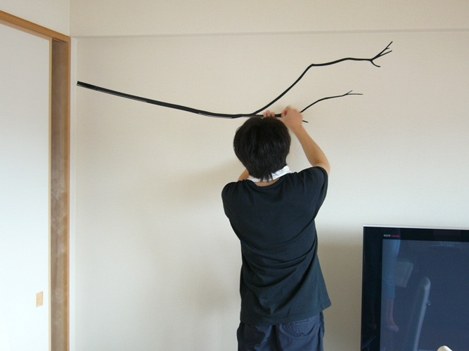 夫には、枝を貼ってもらいました。