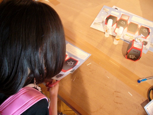 この日は、GWイベントで、ペーパークラフトで作る、ロープウェイ型貯金箱、というのが行われてたので、なっつんと夫が参加しました。