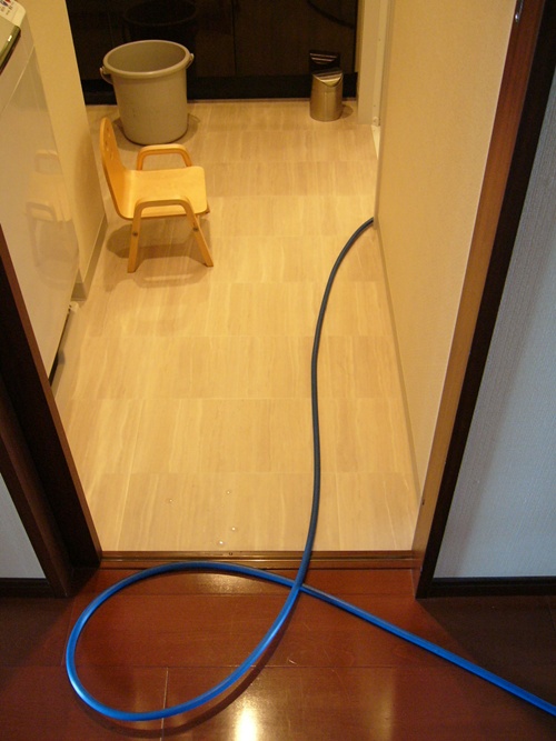 びよ~~~~んっと、玄関からホースが伸びてます。