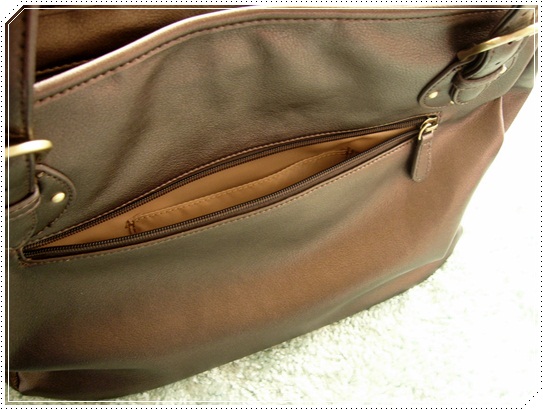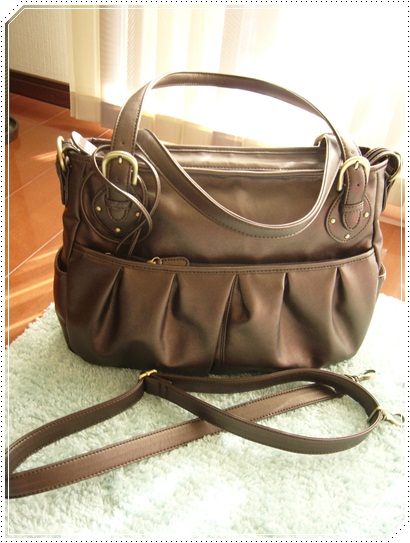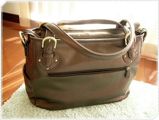 このバッグ、単なる手持ちのバッグだけじゃなく、写真にあるように肩紐もついているので斜め掛けもできます。