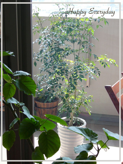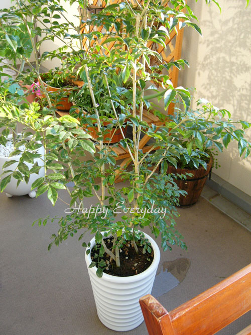 ウンベラータは、水がしっかり切れるまで、しばらくベランダにいてもらって、その後おうちの中に入ることになります。