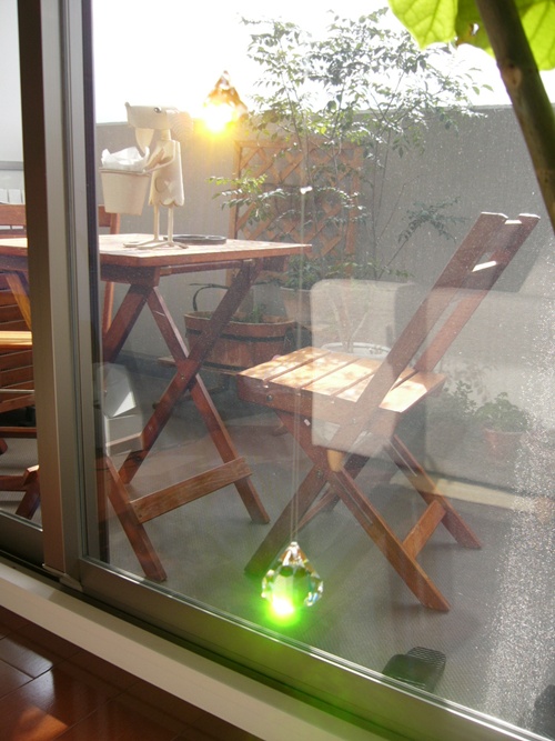 我が家は、西向きのせいか、日が傾くのがかなり遅い時間になるため、カーテンボックスの位置に吊るしたサンキャッチャーに、光が当たるのは、めったにありません。