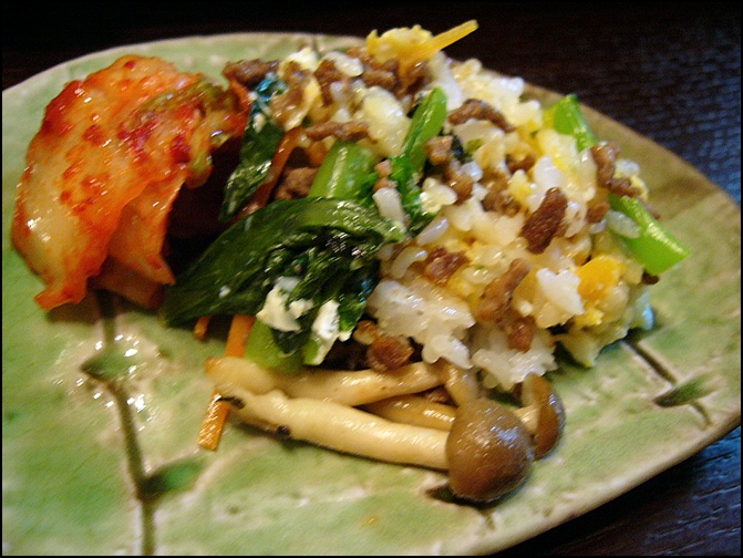 食べるとき夫と私は、キムチを添えて、混ぜ混ぜしながらいただきました。