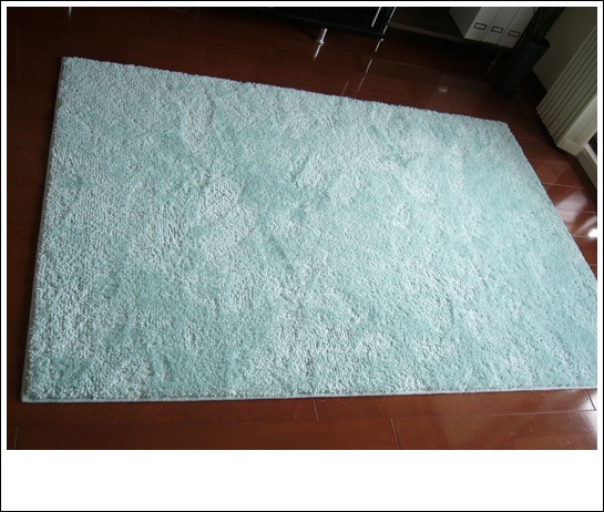 ラグも爽やかで涼しげなグリーン系なので、遠目から見る分には、いい感じだと自分では思ってるのですが、日々使われているうちにシワシワになってしまったようです( ̄Д ̄;;
