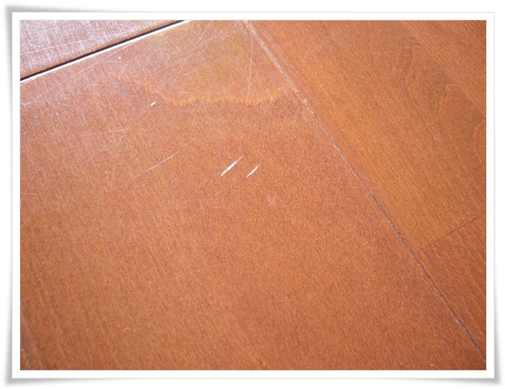 こすれた跡(写真1枚目、2枚目)ぐらいだったら、きっとワックスがはげているぐらいだと思うので、ワックスさえすれば、何とかなるかと思います。