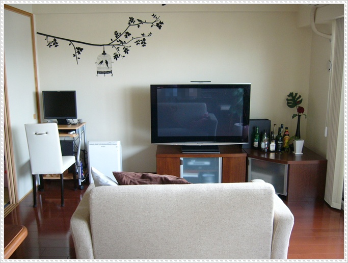 一番左にTV台があるのがわかると思います(ソファ横)