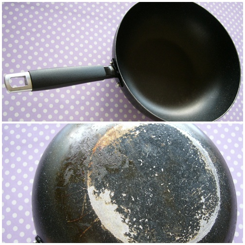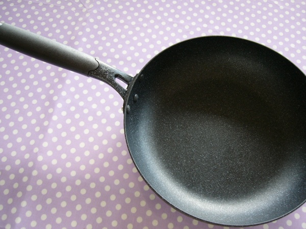 このフライパンは、真っ黒ですね~。