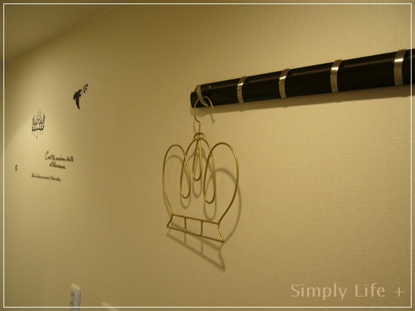 ・・・このハンガー、たぶんひっかけられるのは、スカーフぐらいなので、実用性はあんまりあるとは思えないんですが、エレガントな雰囲気が気に入っちゃってます。
