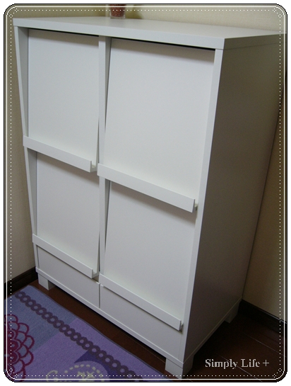 チェストの引き出し部分は、ローラーもついてないし、溝もついてないので、若干引き出しにくいですがそんなしょっちゅう開け閉めするような使い方にしなかったので、問題ナシ!