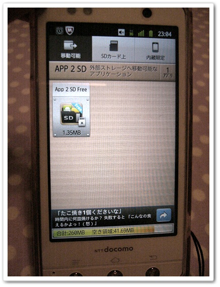 ちなみに機種は、ARROWS Kiss F-03d。