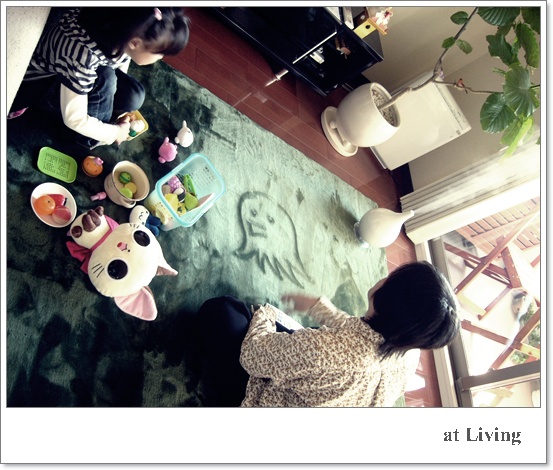 ラグに、謎のキャラが書かれてます(* ̄m ̄)