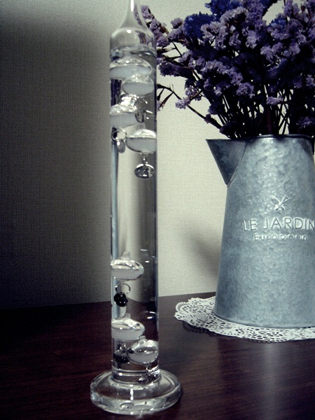 あがったところの一番下のおもりの数字を見る・・・というのがこの温度計の見方。