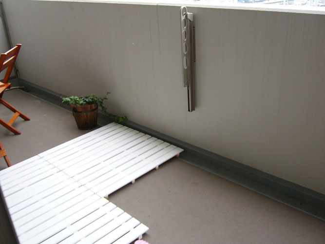 物干し竿は、外して、室内へ・・・たためる物干しは、ベランダの隅っこへ移動しました。