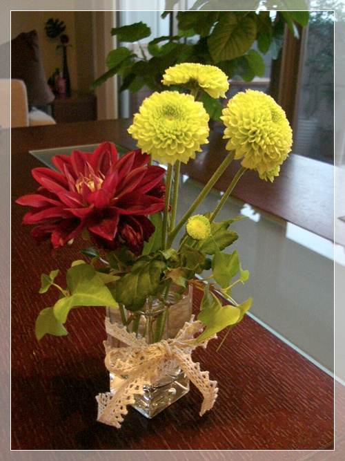 スプレーマムとダリア・・・少しだけ和なイメージであしらってみました。