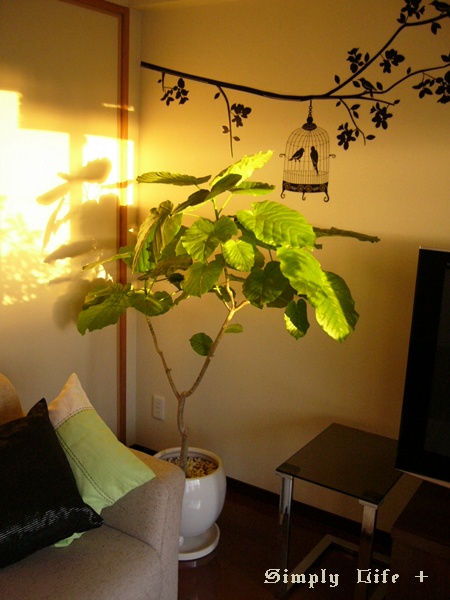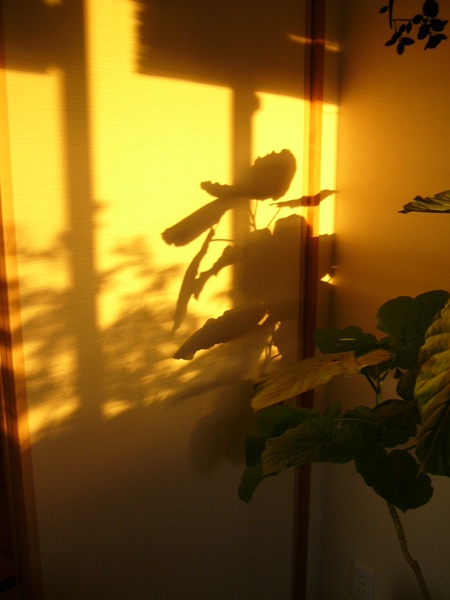 ウンベラータの位置を変えたので、ふすまにも影絵のようにうつります。