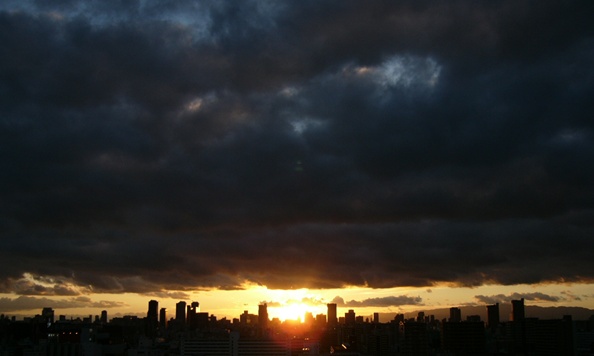 この日は、確か昼間、すごく天気が悪かった(雷がものすごかった日です)んですが、日没間際になって、ようやく太陽がちらっと見えました。