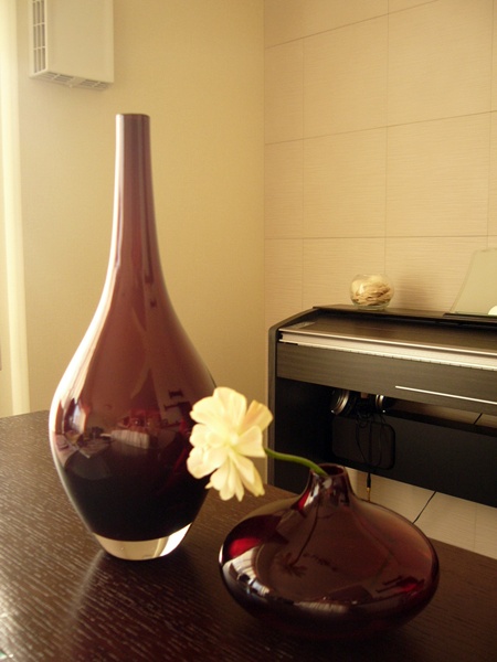 本当は、フラワーベースは、白が欲しいんですが、一個目が赤にしちゃったので、つい赤でそろえてる・・・ってカンジで。