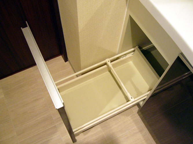 その時に出した希望が、洗面の引き出し部分の一番左側をランドリーボックス(洗濯物入れ)にする、ということなんです。