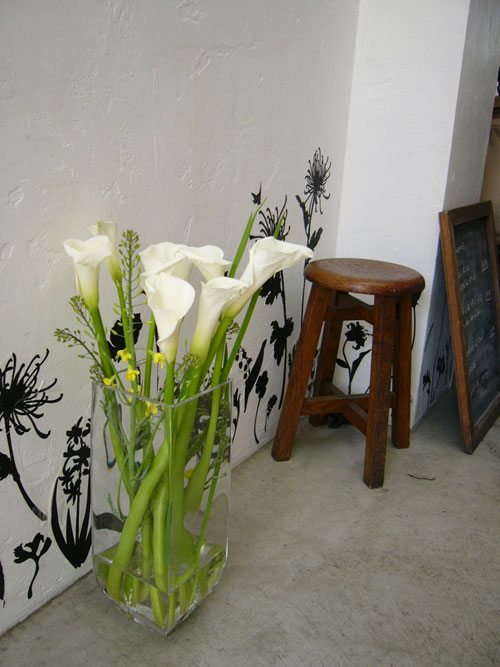 ちなみに、壁に貼ってある黒い花や蝶のステッカーも今回のためのオリジナルなんですよ。
