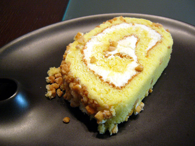 有精卵のふわふわ生地に、フレッシュバターとゲランデの塩、包み込みように添えられたアーモンドが相性抜群のロールケーキです。