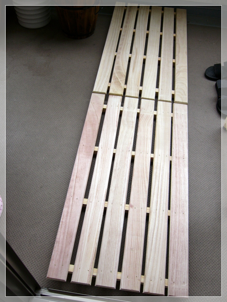 すのこにサンドペーパーかけて・・・ペイントして並べるだけ(* ̄m ̄)