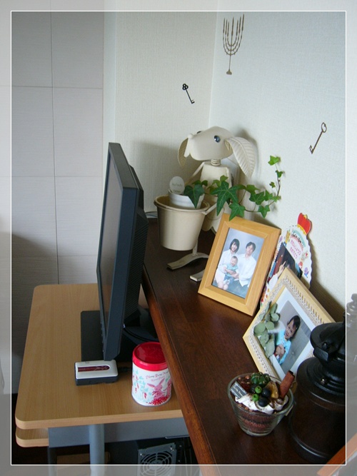 あ、だけど、PCデスクの色がこの周りの家具と比べると、浮いてしまってるので、本気でコレは塗りなおそうと思います。。