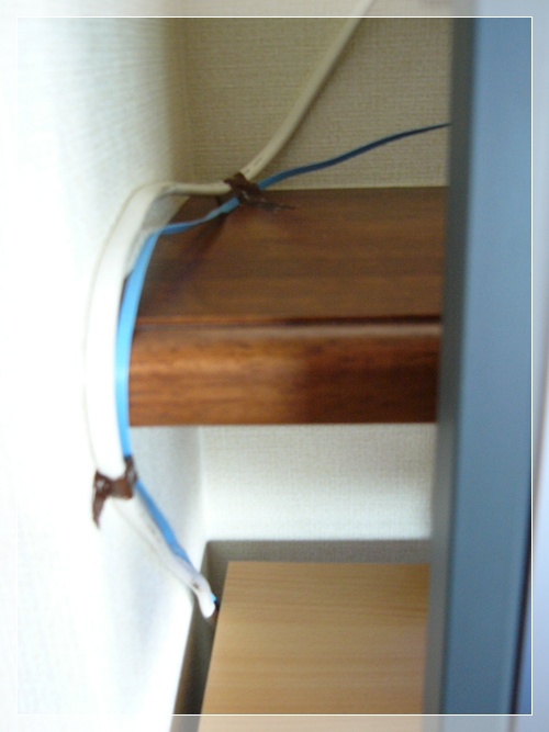 そして、横を這う、コード類は、マスキングテープでぺたり、ととめました。
