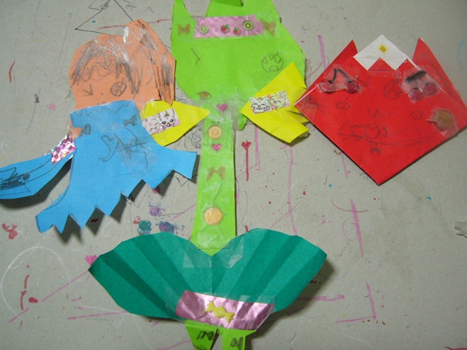 色紙とハサミを持って、チョキチョキ・・・糊でペタペタ。。