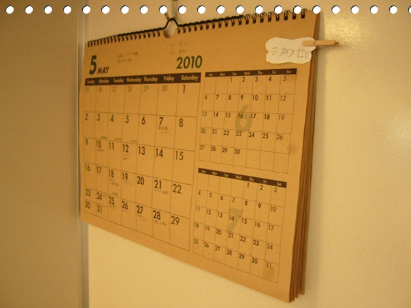 せっかくなので、カレンダーの隅っこに、クリップで留めて・・・