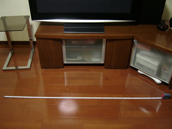 ちょうどメジャーの一番左側~右側の部分までが新しく欲しいと思ってるTVボードの幅になります。
