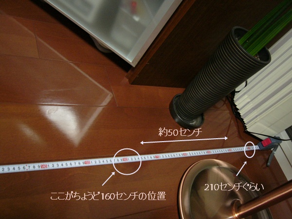 中心部分は、今現在と変わらないと想定して、その位置を80センチの位置にして、メジャーを設置。