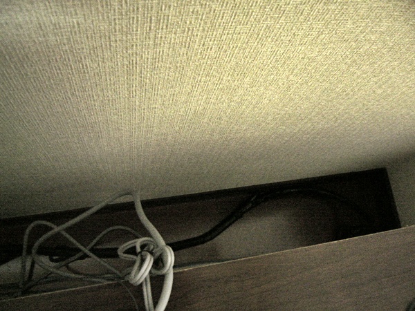 この部分は、夫がコンセント類を比較的まとめているので、まださっきの場所ほどごっちゃり感はありません。