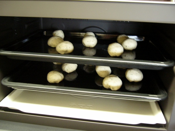 前のは、ぐるぐる回るオーブンレンジだったので、天板はなく、ターンテーブルの上にクッキングシートを敷いて発酵させたり。。