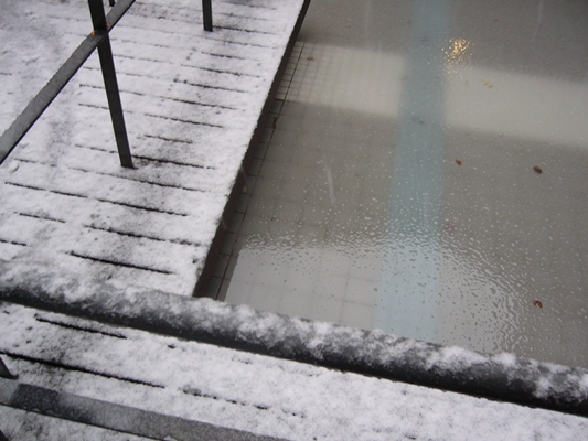 マンション内の水景施設は、雪が積もり・・・