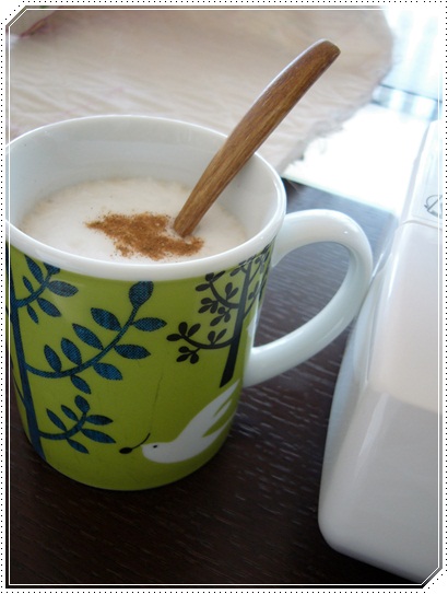 牛乳を泡立てて、シナモンを少し振りかけて。