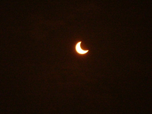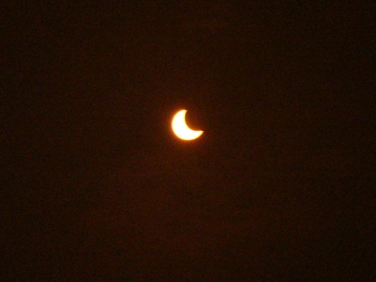 日食メガネは買わず、真っ黒のアクリル板を購入したので、アクリル板越しのデジカメによる撮影です。