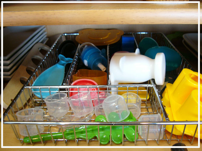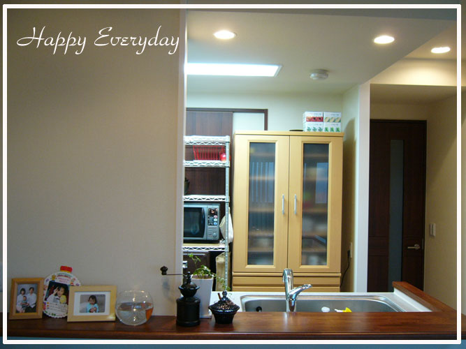 娘のお弁当箱とか幼稚園のコップとかがイチバン上には、置いてあります。