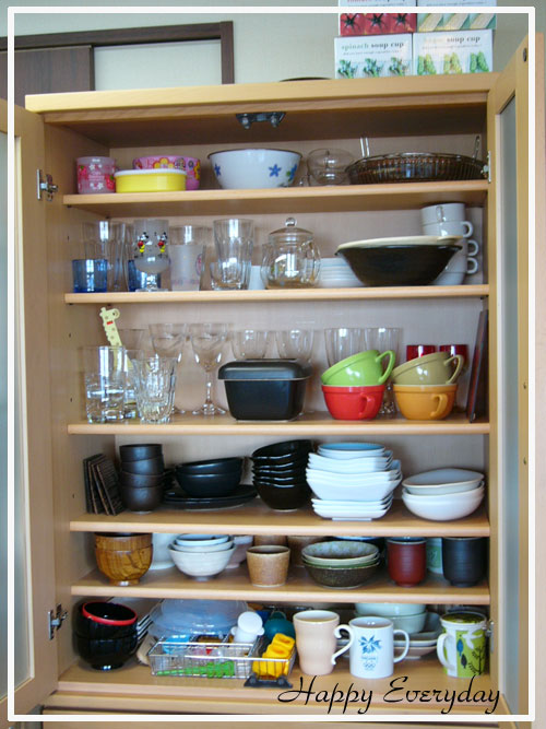 真ん中あたりが、イチバン使うグラス、よく使うお皿、などです。